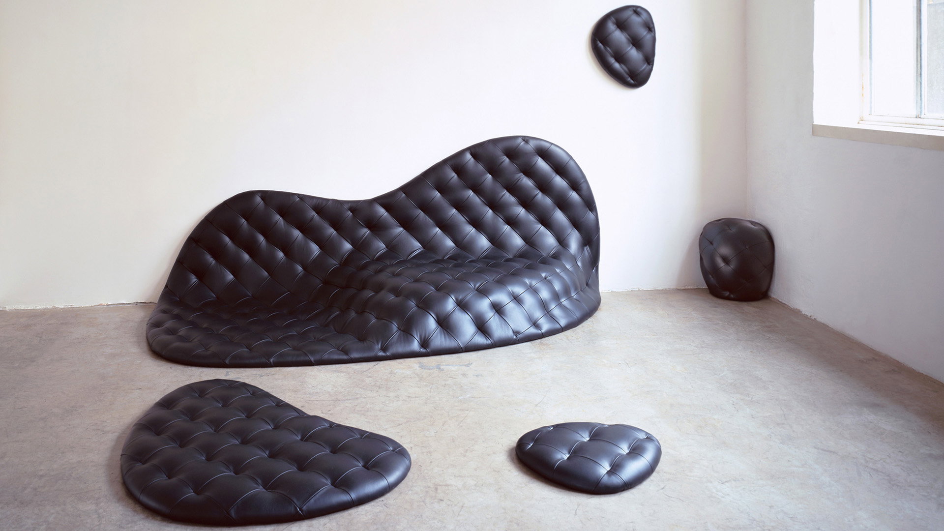 Studio Formafantasma experimentiert mit neuen Techniken, um das Recycling von Elektronikschrott zu verbessern. Und völlig ihrer Funktion entrückt präsentieren sich Objekte wie der Stuhl Love me tender (2000/2001) von Didier Faustino.