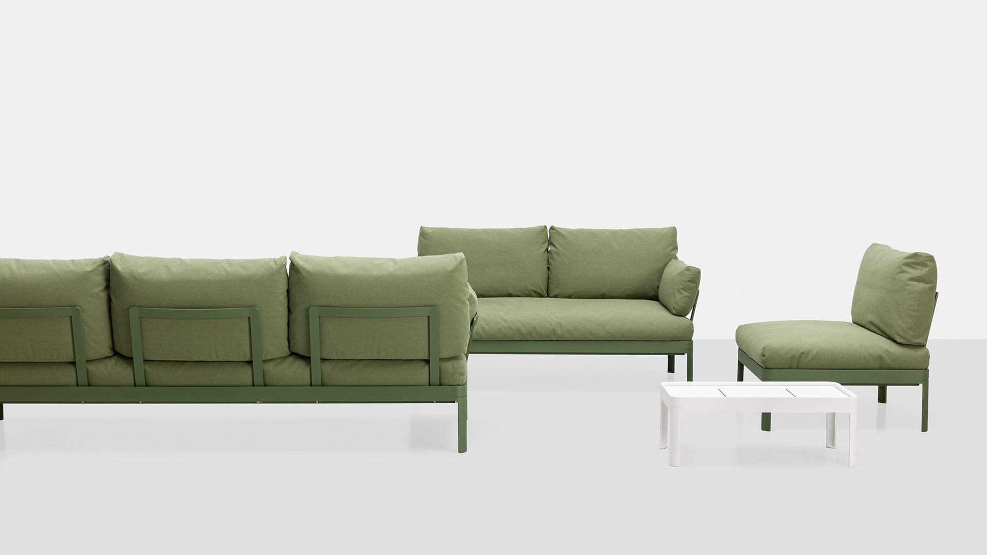 Alu Alu kommt als Neuauflage daher. 2014 entwirft Luciano Bertoncini das Outdoor-System mit einem zu 100 Prozent recycelbaren, pulverlackierten Aluminiumrahmen und Kunststofflamellen. Sofas, Sessel, Couchtische und Liegen, die sich leicht auf- und abbauen lassen. Rückenlehnen und Armlehnen, die dank eines Schnellkupplungssystems einfach zu montieren sind. Sommer genießen!