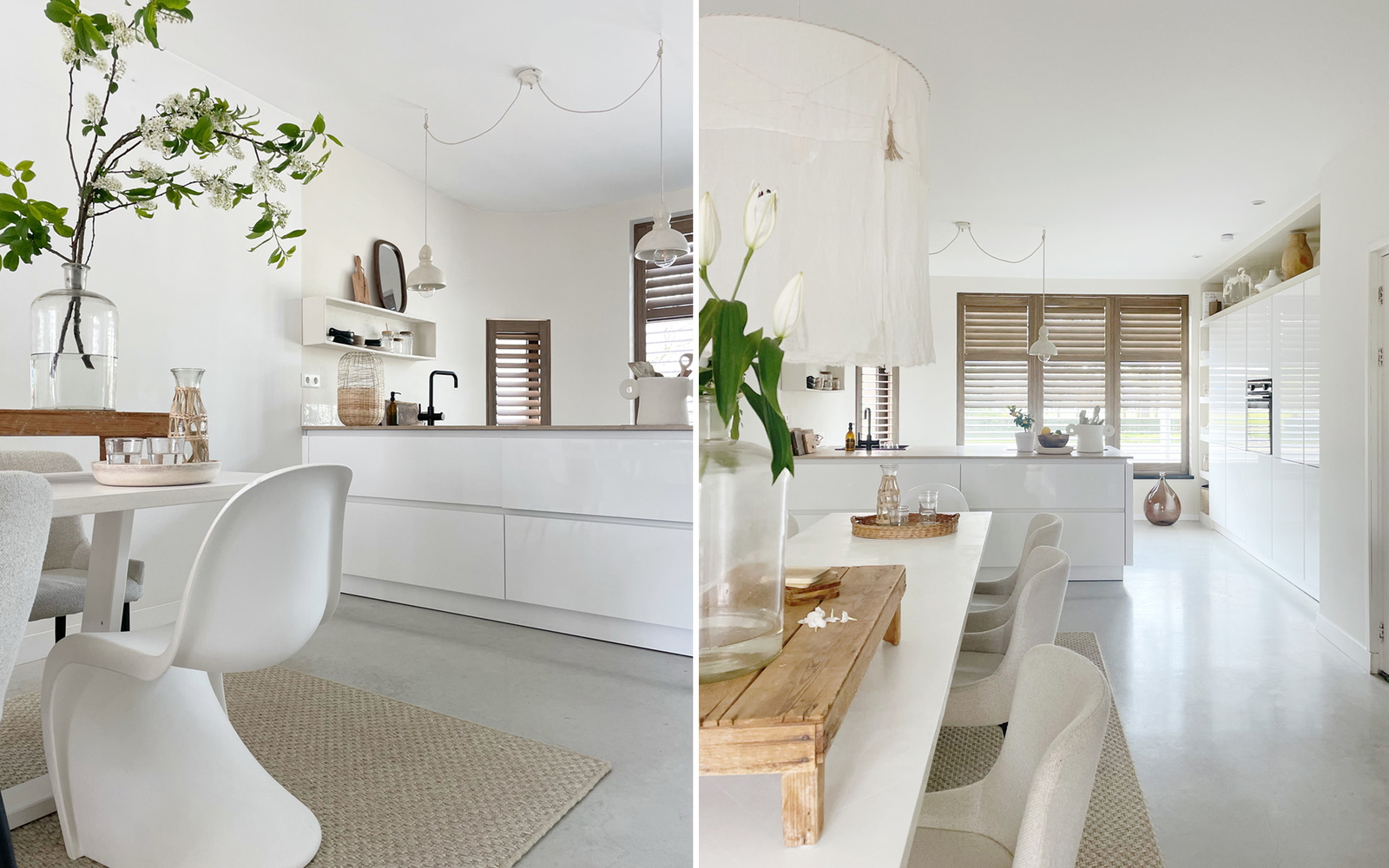 Die Familie erhielt viele originale Details seines Hauses aus dem Jahr 1918 – kombiniert um neue Elemente. Die ehemalige 50 Quadratmeter große Garage wurde in ein modernes Wohnzimmer mit hohen Decken, schmalen Fenstern und einer vollständig öffnenden Schiebetür verwandelt. Das alte Haus ist durch einen verglasten Korridor mit dem neuen Wohnzimmer verbunden. JASNO Shutters finden sich im gesamten Haus – passgenau für jedes Fenster auf Maß gefertigt.
