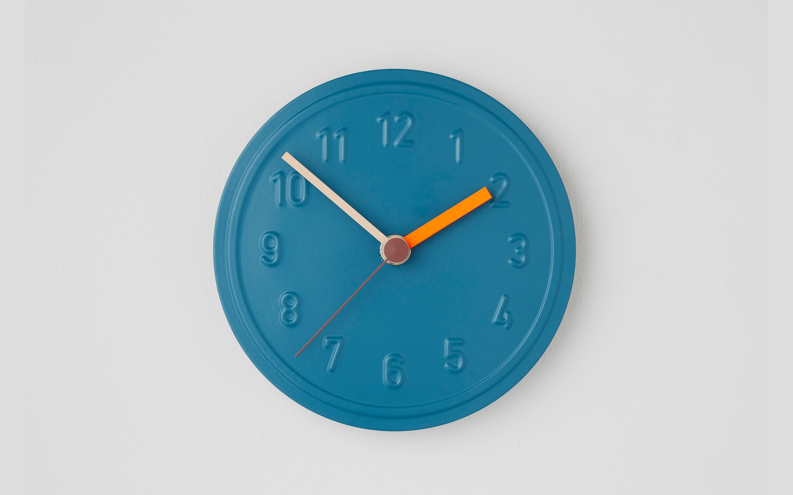 1979 entwirft Jochen Gros eine Wanduhr, die reduzierter kaum sein könnte. Alu Alu besteht aus drei Elemente: Quarzuhrwerk, Uhrzeiger und ein an Autonummernschilder erinnerndes geprägtes Zifferblatt aus Aluminium. Die Normtypografie der bekannten TÜV-Plaketten verleiht der Uhr ihren authentischen Charme. Schwarz, Weiß, Rosabraun, Leuchtorange, Grünspan und Pfirsich Pastell: Heute bietet Richard Lampert seine ikonische Alu Alu zusätzlich farbig lackiert an.